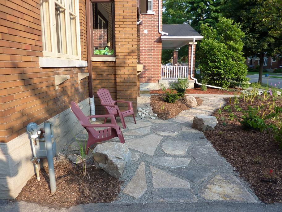 We had a couple of large flat-topped stones put next to the patio, which can serve as extra seats or tables.