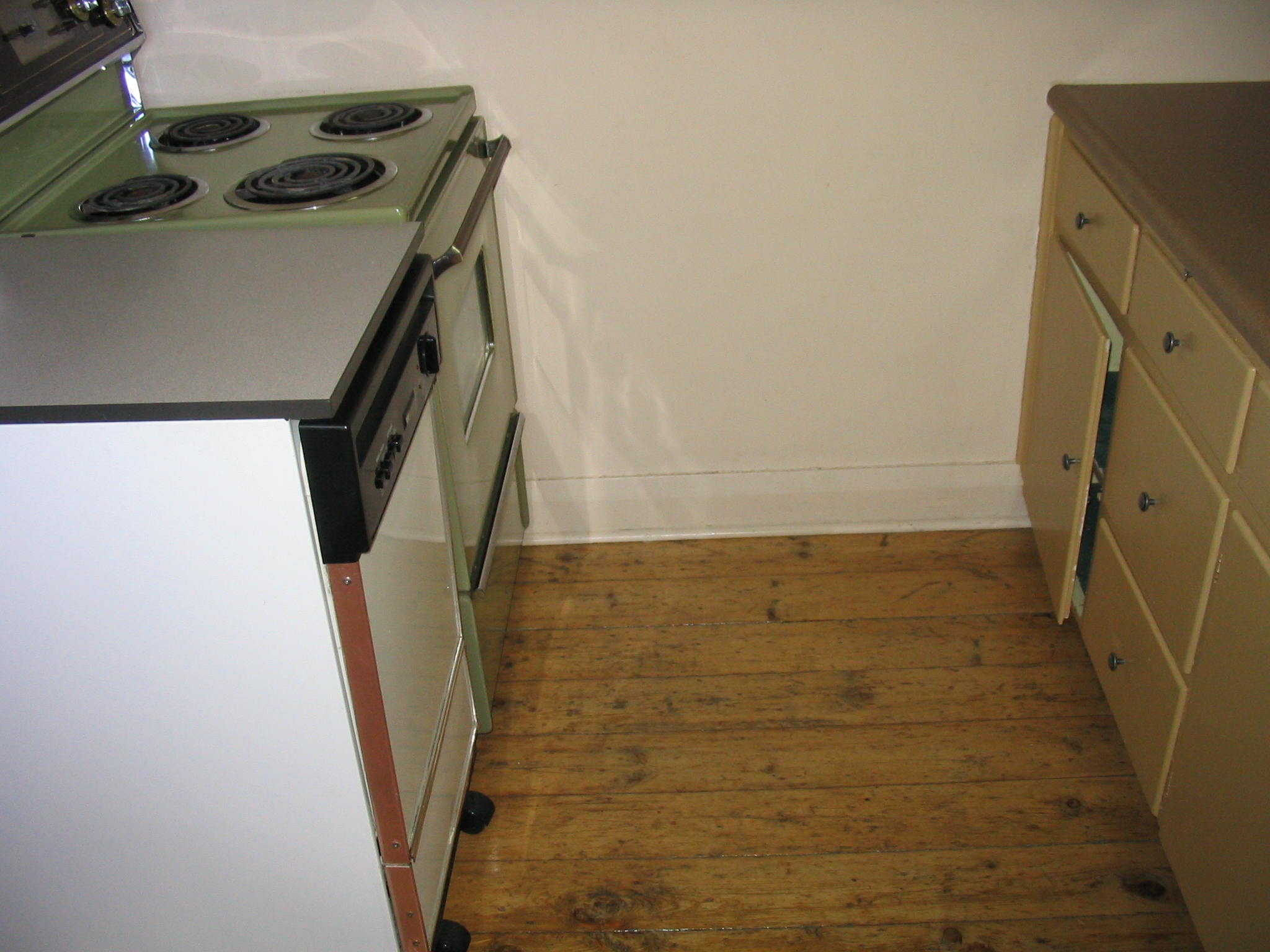 The floor in the back kitchen's also in OK condition. We decided just to refinish it.