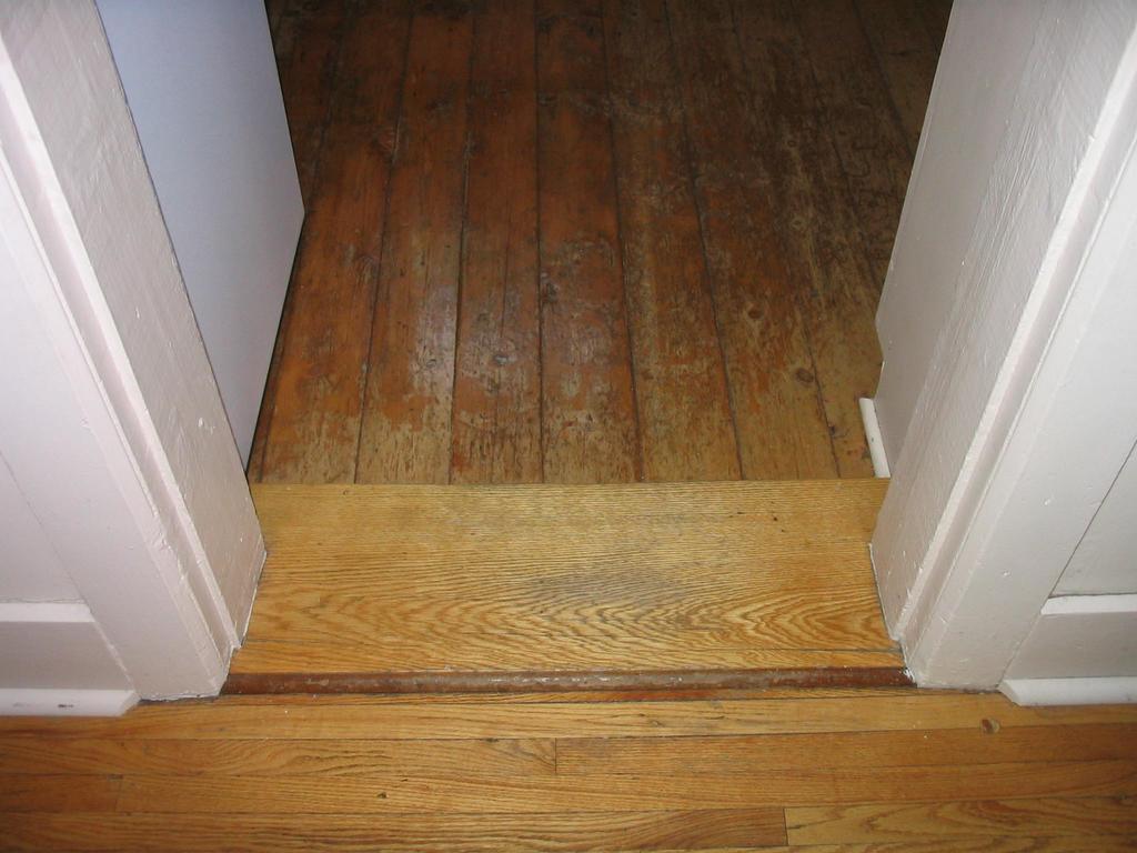 Between the front and back kitchens, there's a little step. This wood's in OK condition.