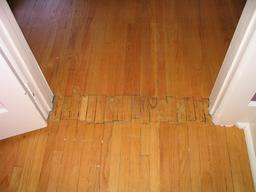 The floor between the dining room and the kitchen was badly patched, assumedly when the doorway was created.