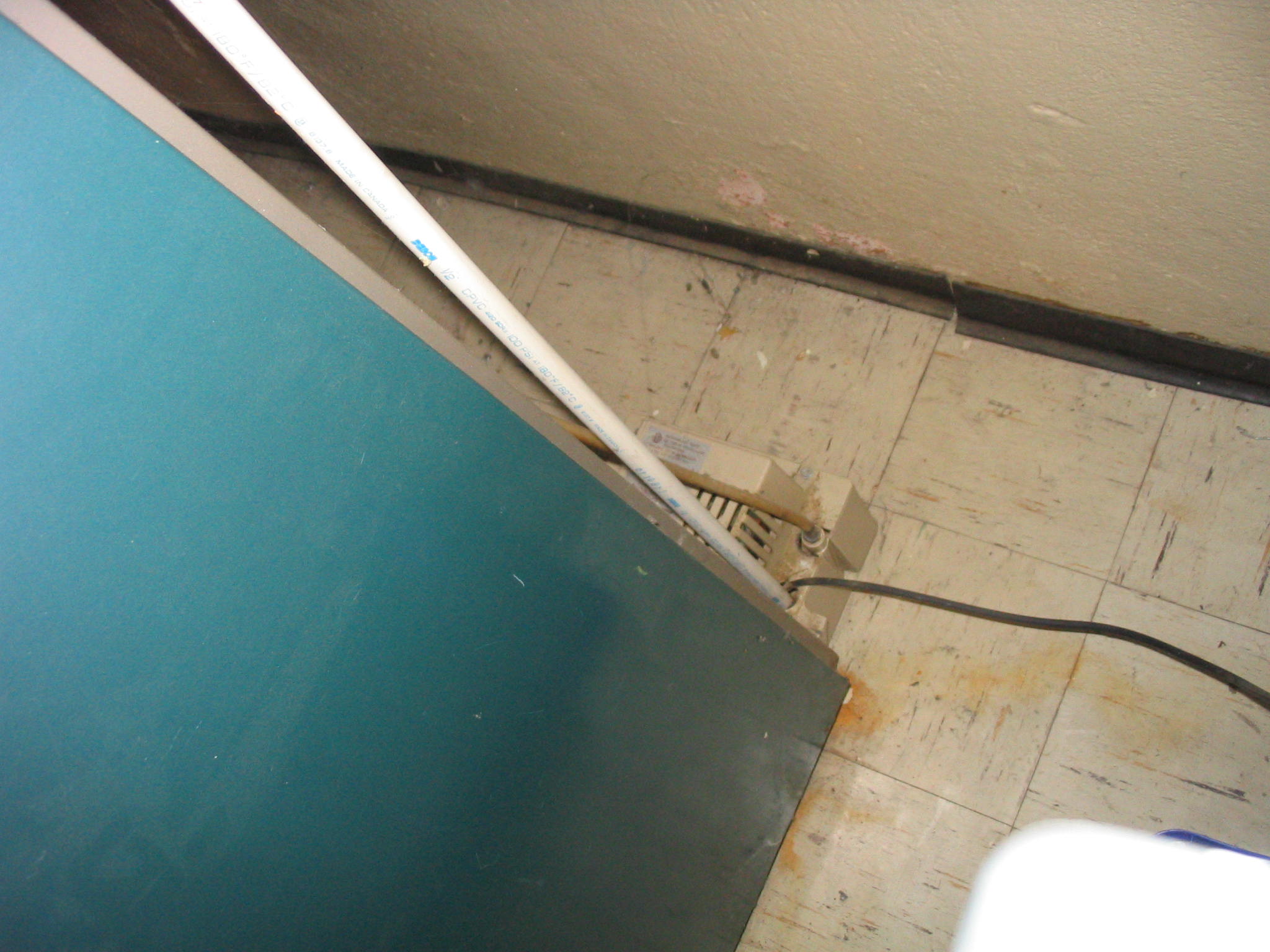 The old condenser pump that sends the water runoff across the basement to where the drain is.