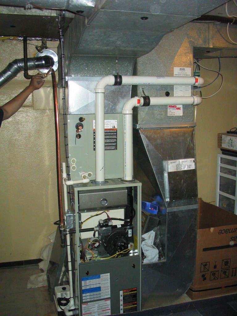 The furnace is hooked up to the air input and exhaust.