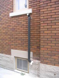 The air input (white) and exhaust snorkel (black). The snorel ourput is 7 feet off the ground because that's our driveway it's venting into. If there were a car right in front of the exhaust, its paint would get stripped off in short order.