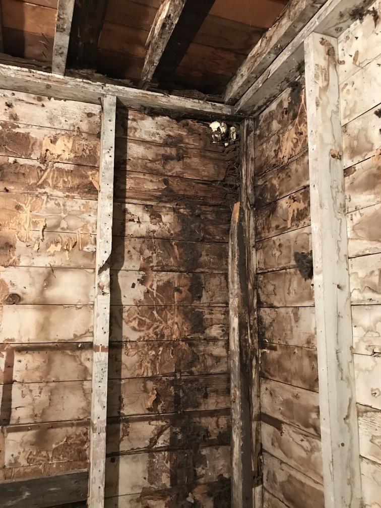 Ugh. Some of the wood in the walls is rotted. :-( It appears to be from before we replaced the roof over this room a while back, and it's totally dry, so at least it's not an ongoing problem.
