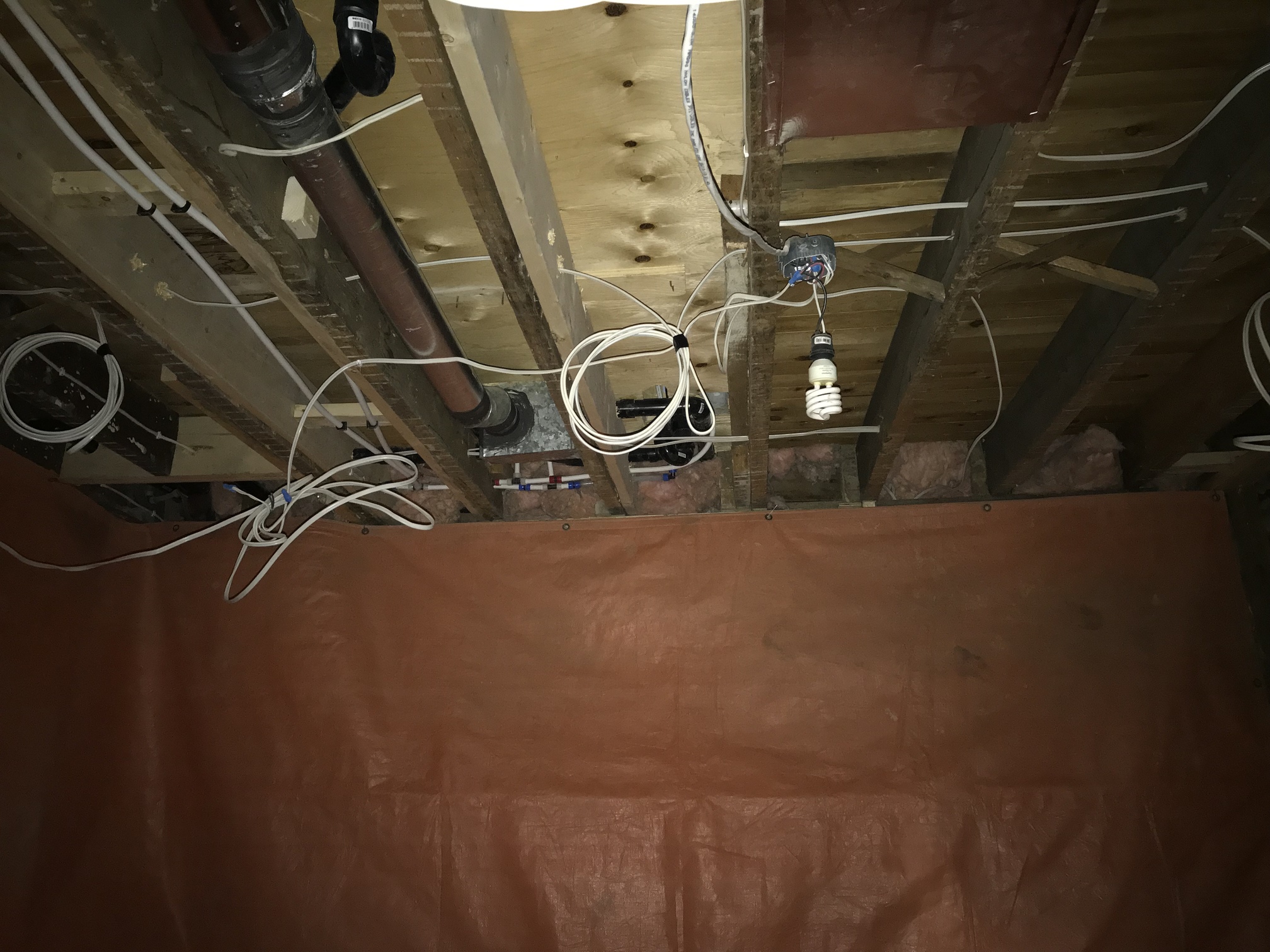 Wiring in the front kitchen, and the insulating blanket trying to keep out the winter weather