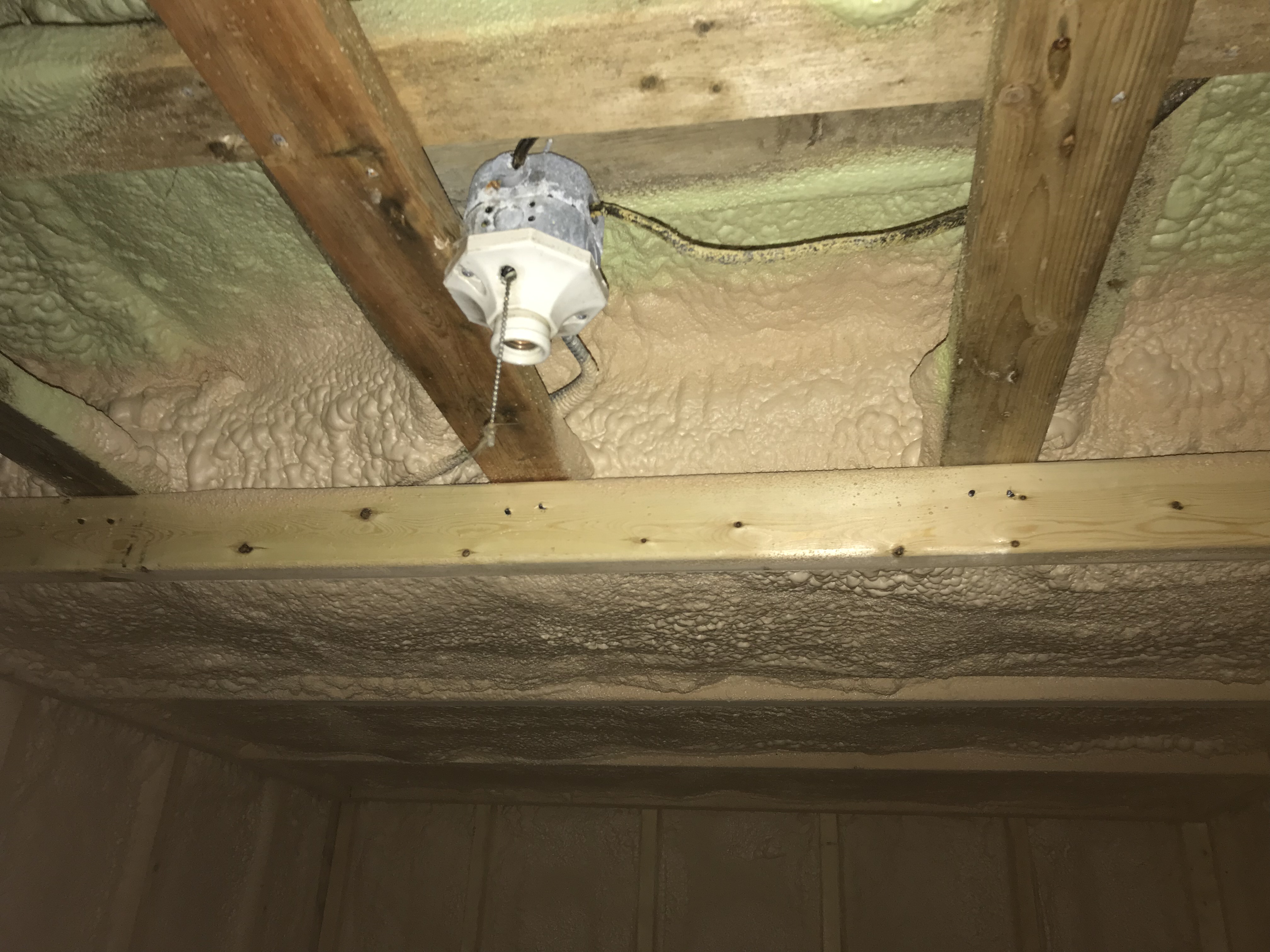 Only half of the ceiling of this room, which is under the back porch steps, needs insulation. The rest is under the kitchen itself. This is the dividing line.