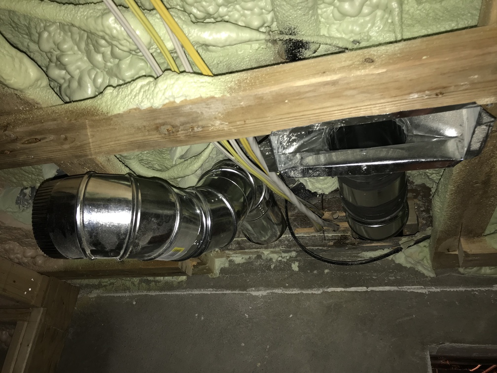 In the room underneath, the ductwork for the newly moved vent is in progress.