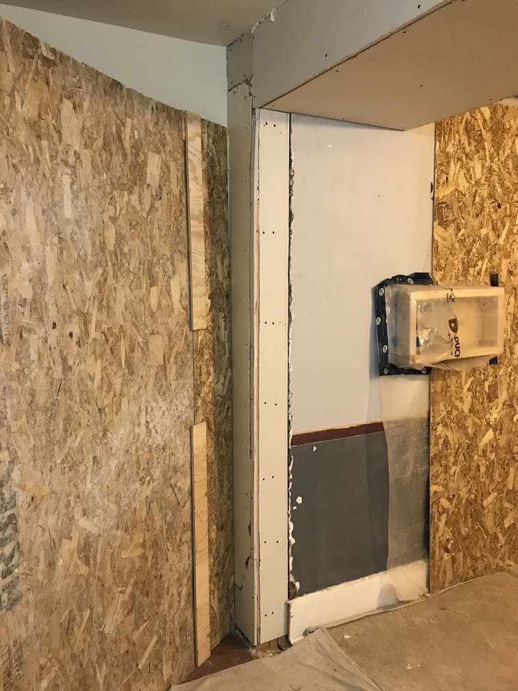The edge of the dining room wall (which will remain), now drywall instead of plaster