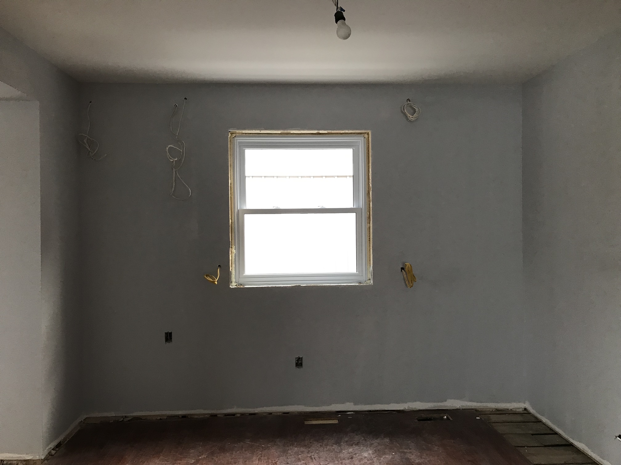 The new double-hung window at the side of the house