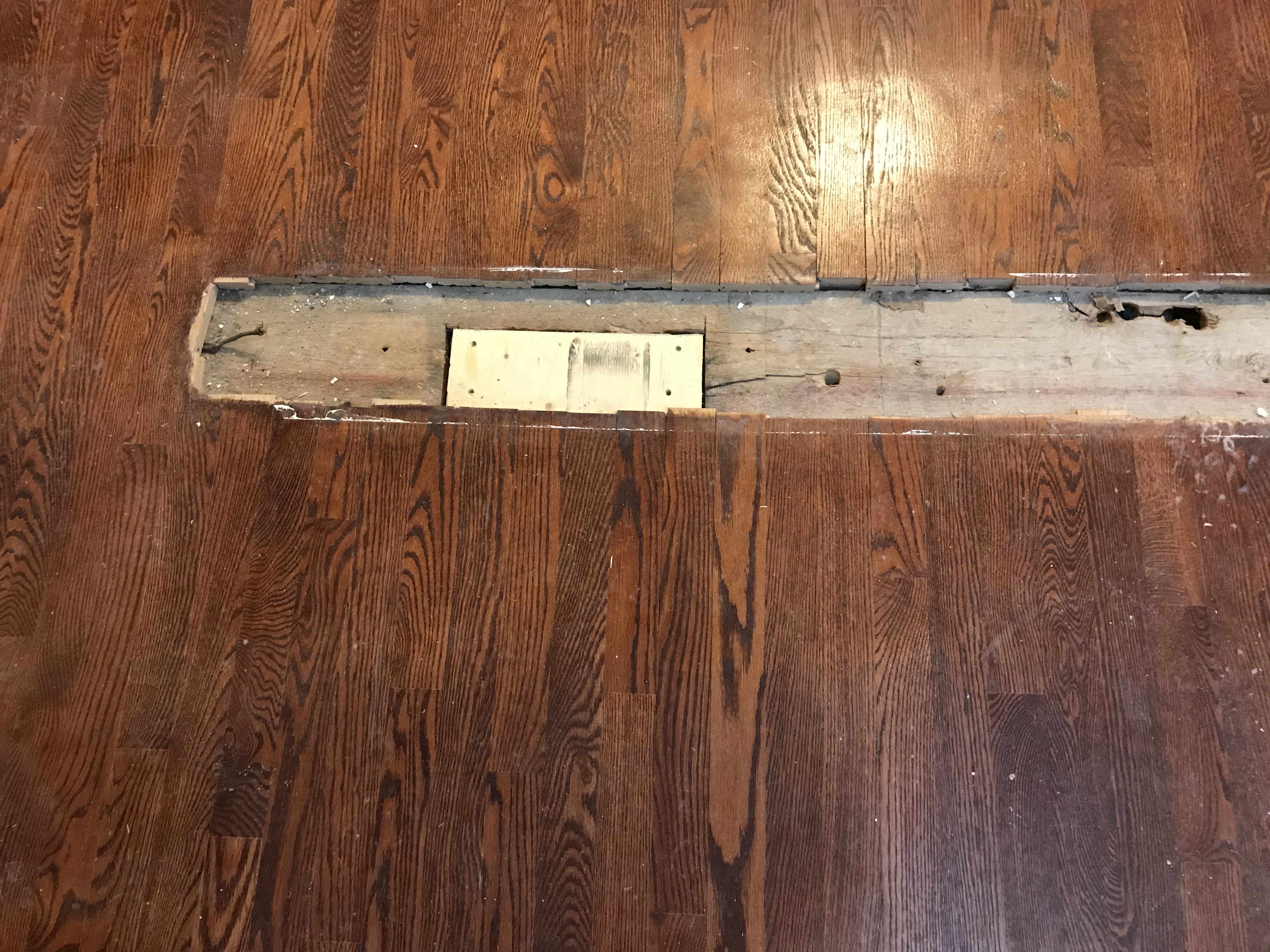 The floor where the wall used to be. Part of this end of the hole will be toothed in properly.
