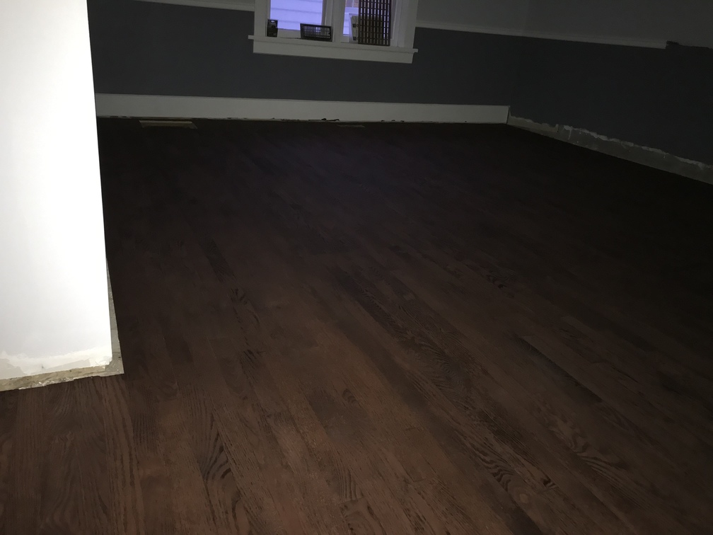 The floors were sanded and stained today. Here is the dining room.