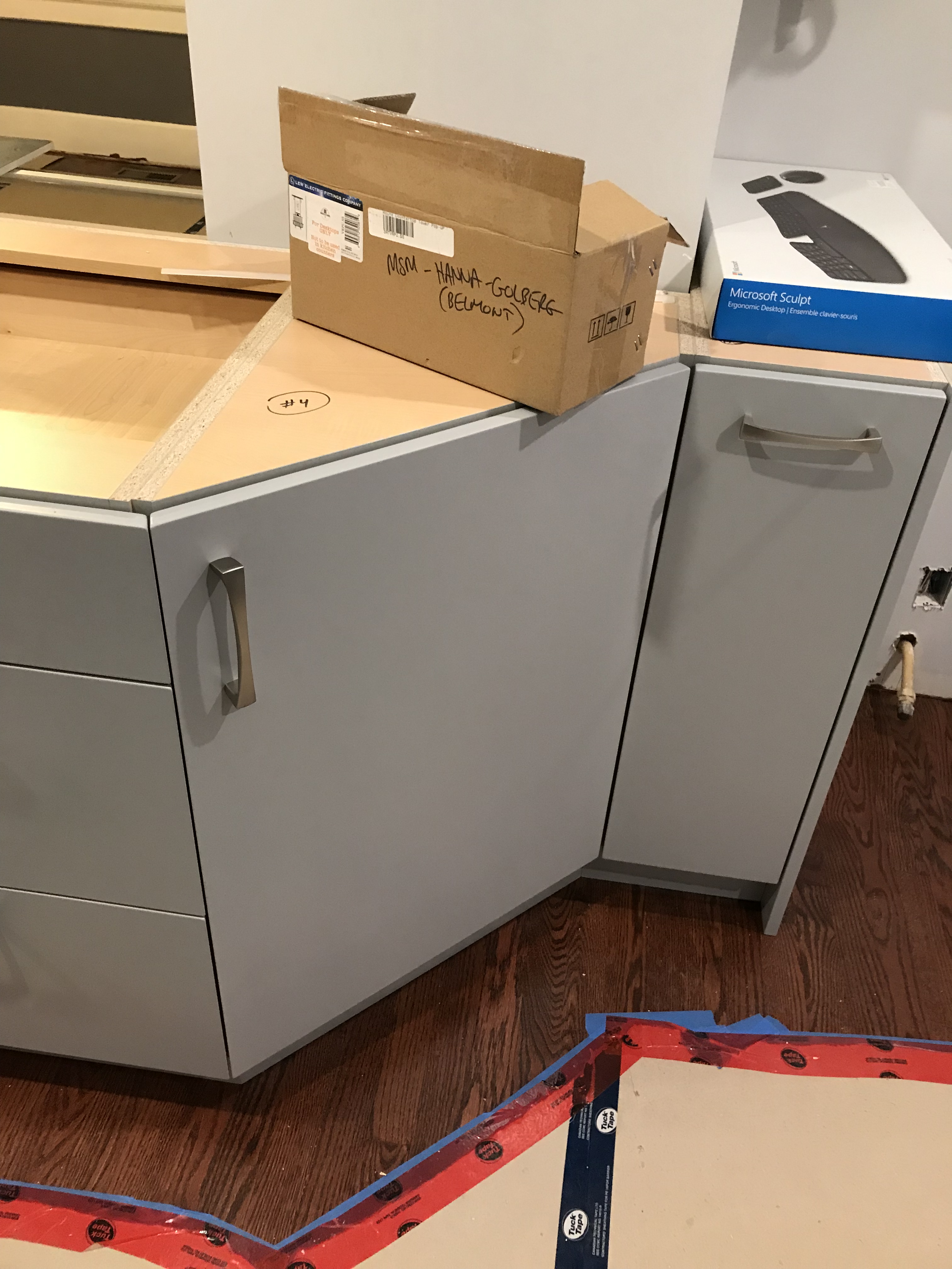The last of the cabinet doors are installed.