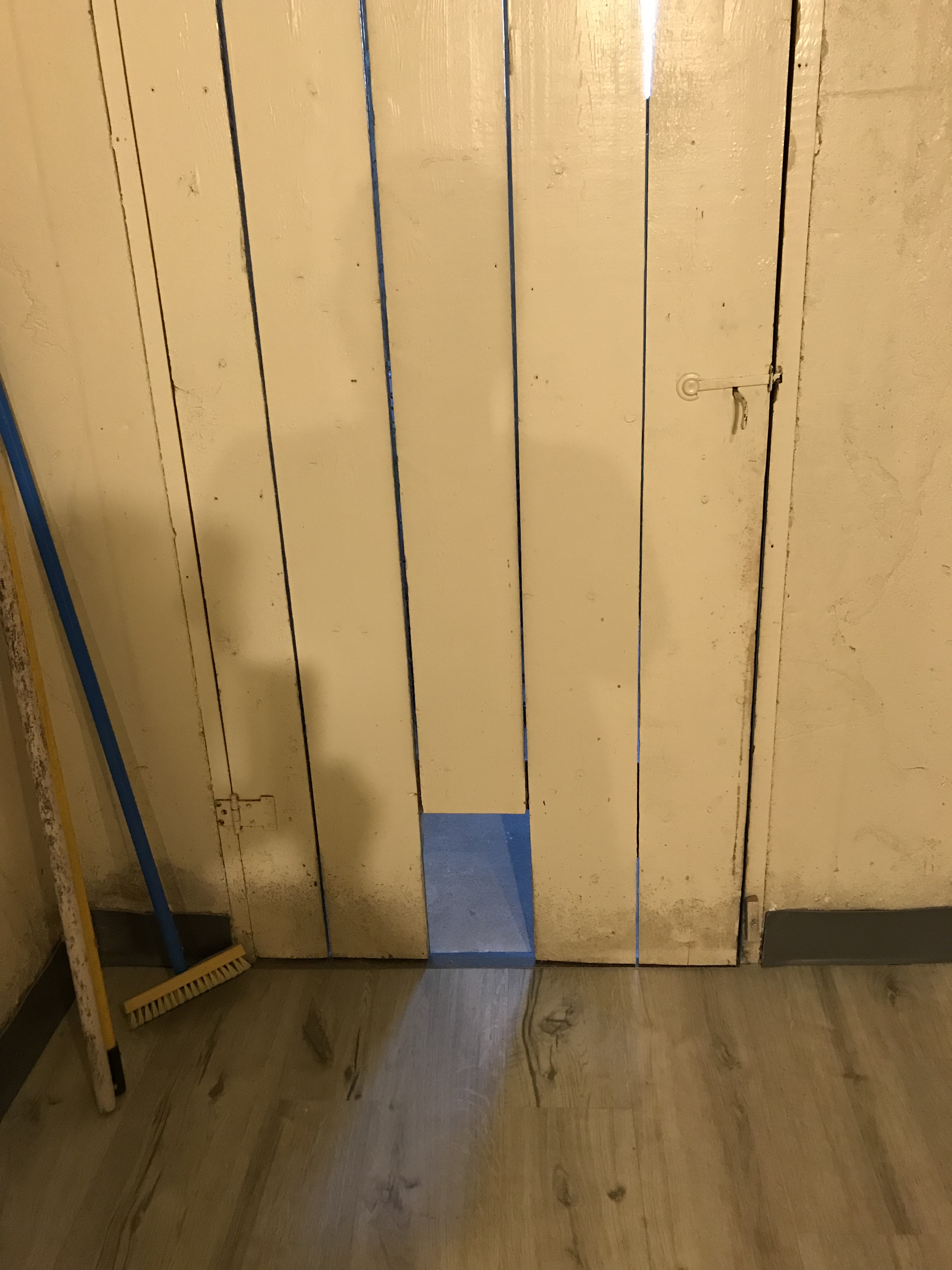 The back room in the basement, previously unusable, will become the cat's litter room. There's now a "cat door" hole in the door for them to use.