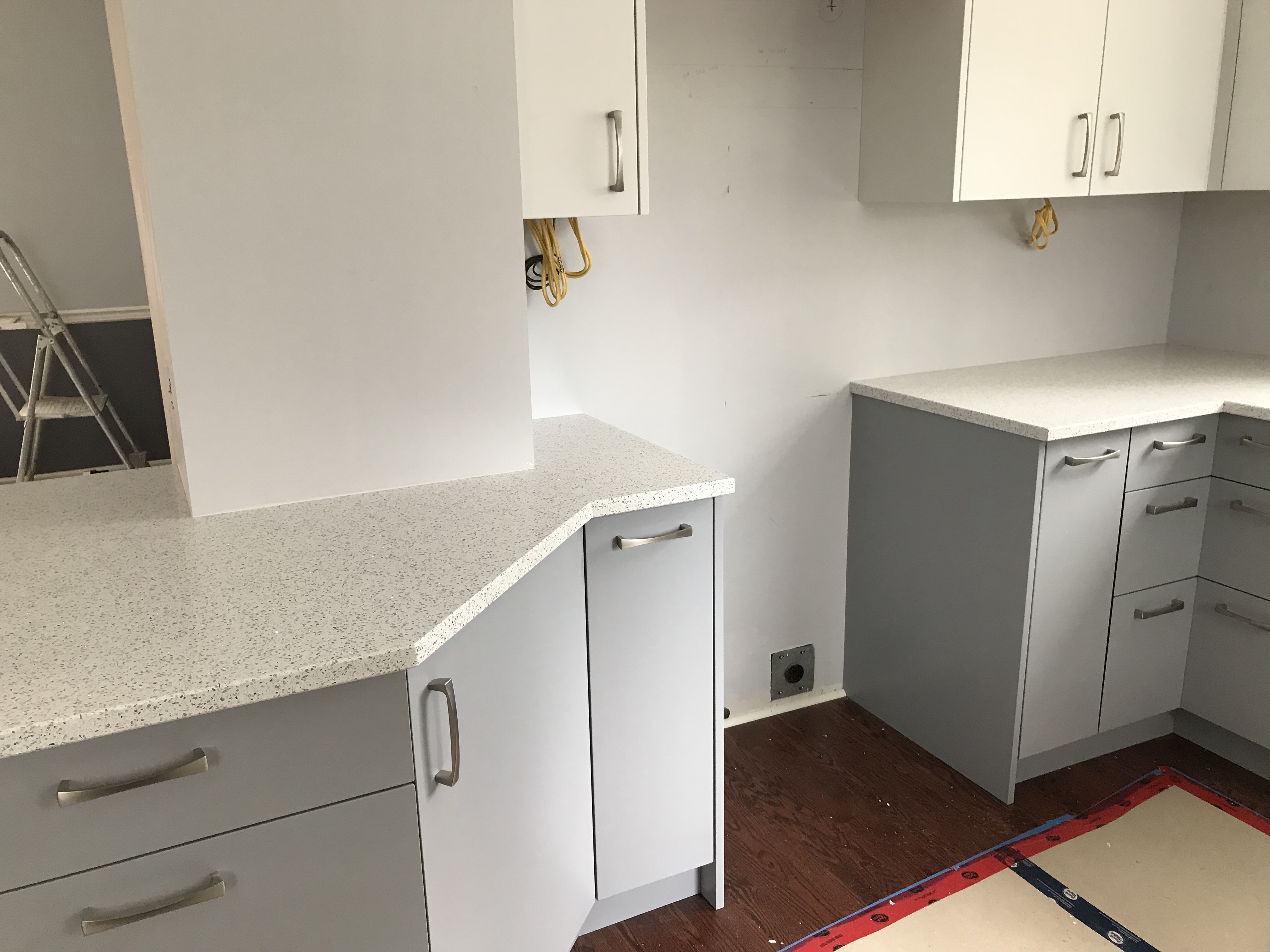 The other end of the peninsula, leading to the stove area.