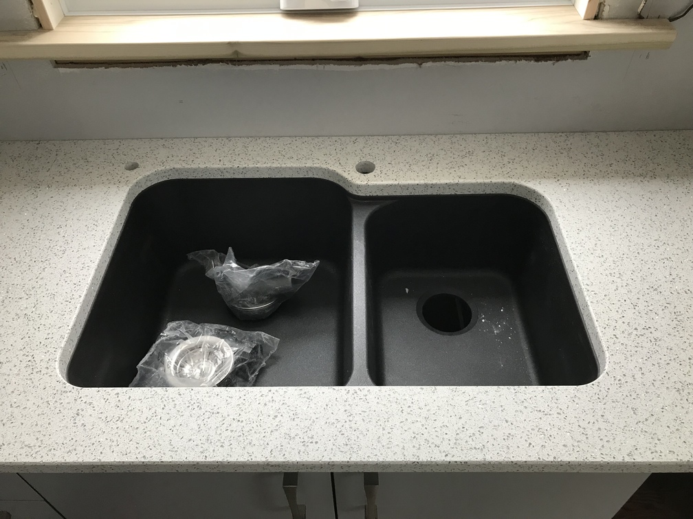The sink itself, along with the extended windowsill for the kittens to sit on.
