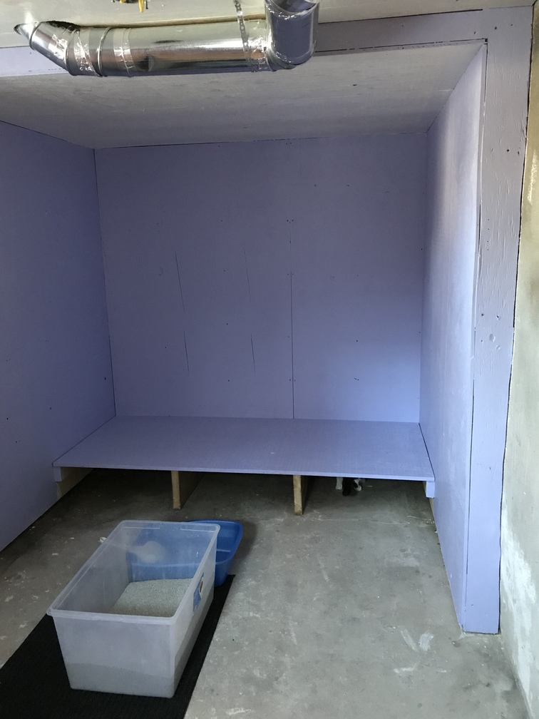 This will be the room for the cats' litterboxes, freeing up much more useful space in the rest of the basement.