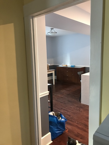 The door between the foyer and the kitchen is gone, as indeed are the hinges.