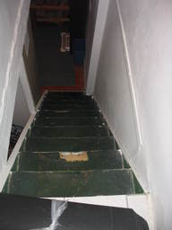 The stairs to the basement. We aimed to pretty these up a bit by installing a runner.