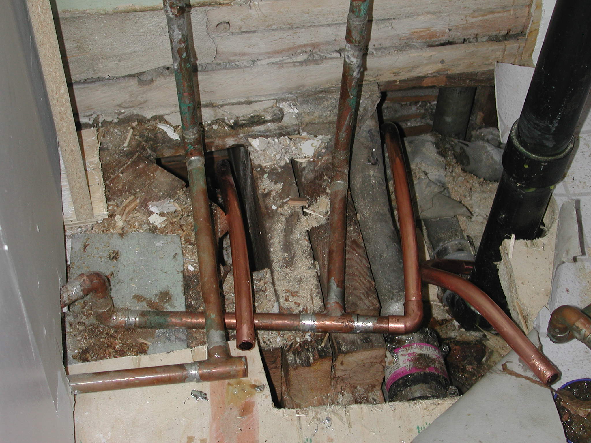 Flexible copper piping is fed downstairs.