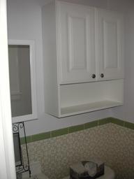 And then a deeper cabinet above the toilet. Now there's plenty of space for stuff.