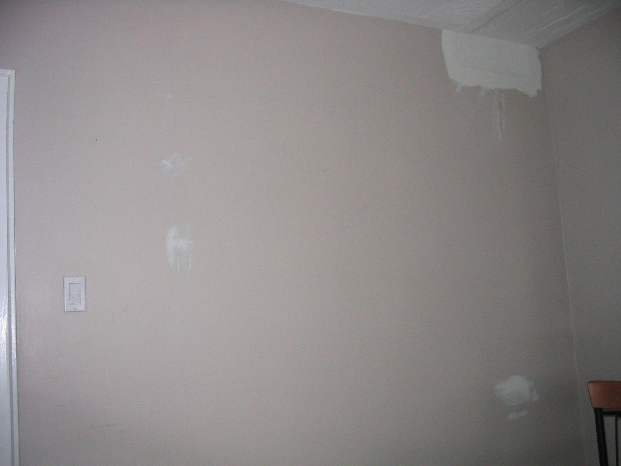 Fast-forward a while. The plumber left the hole poorly patched, and "helpfully" touched up a few other spots on the wall, but didn't paint them.