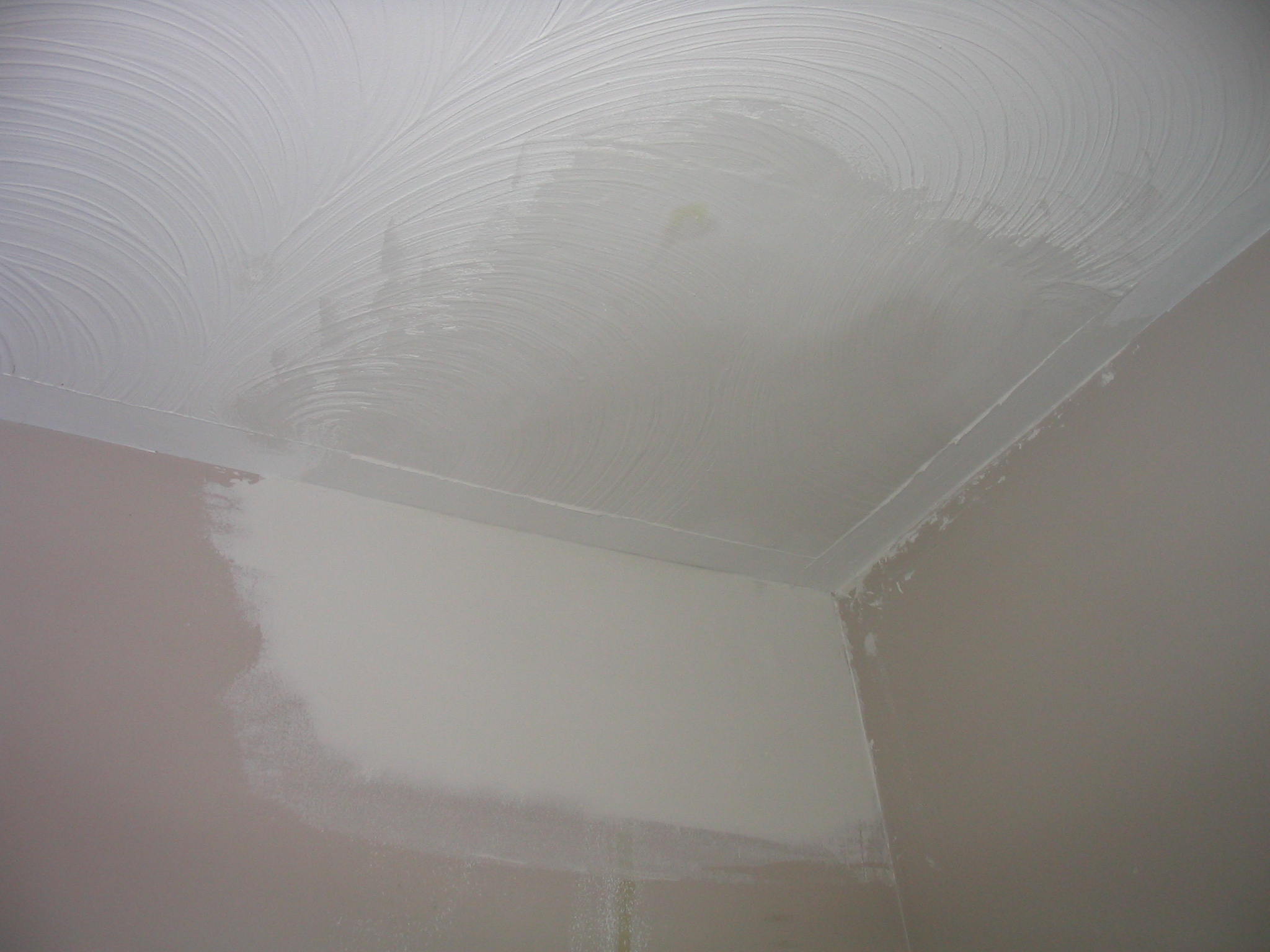 After day 1 of the repair, the ceiling is built up, and the pattern at least somewhat matched. It still needs painting.