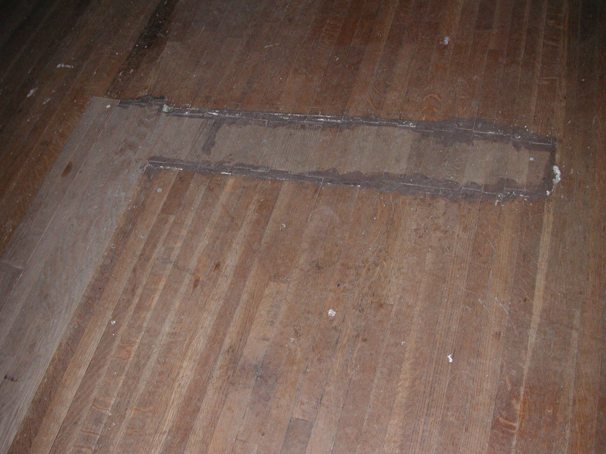 There was clearly a wall that had been removed, and the floor was subsequently patched extremely poorly.