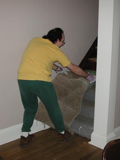 Action shot of Ian ripping off the carpet. (That's my first pair of work gloves!)