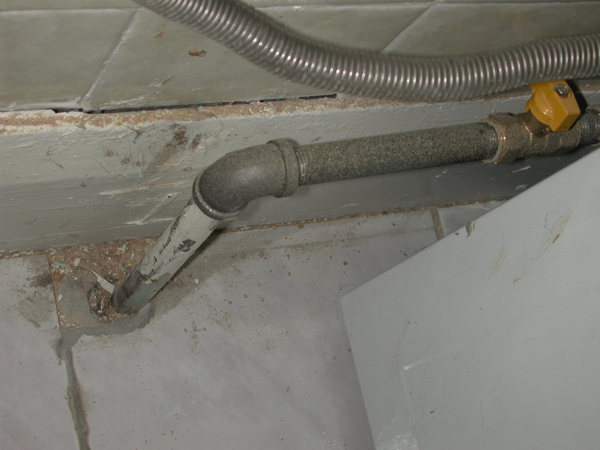 We had to get our gas feed modified so that it the pipe didn't end behind where the base cabinet would be. The old fitting also required a wrench to turn the gas on or off. Now, the pipe goes out from behind the (future location of) the cabinet, and has an easy-to-turn ball valve.