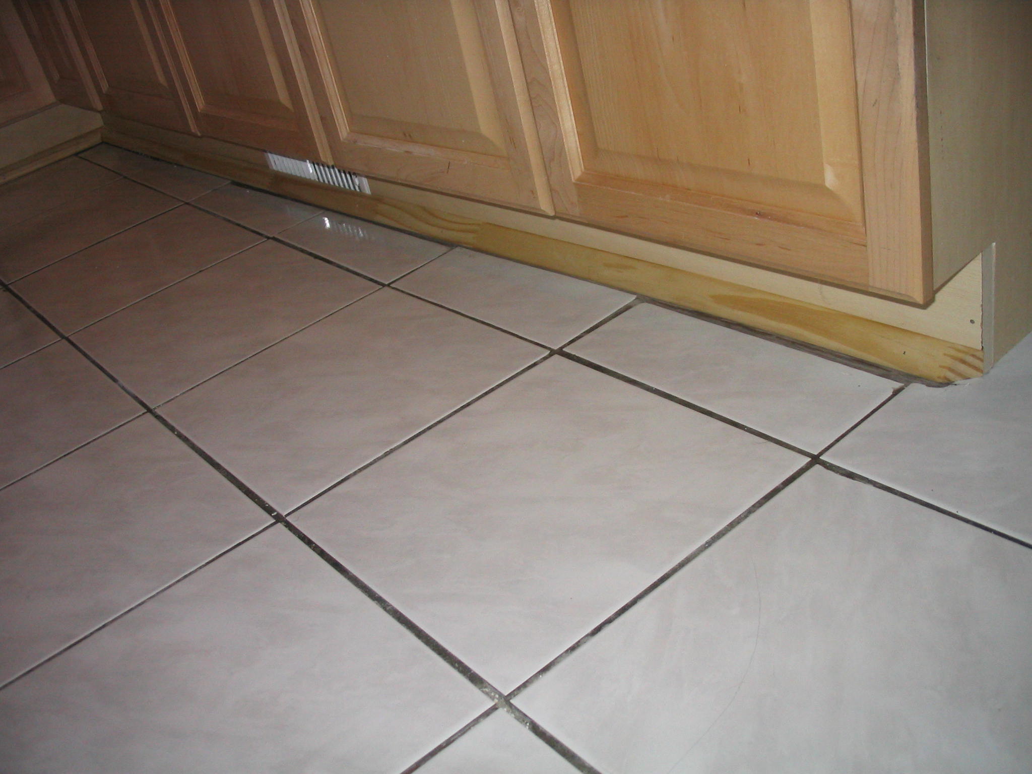 Quarter-round is used to cover the space between the cabinet and the tile.