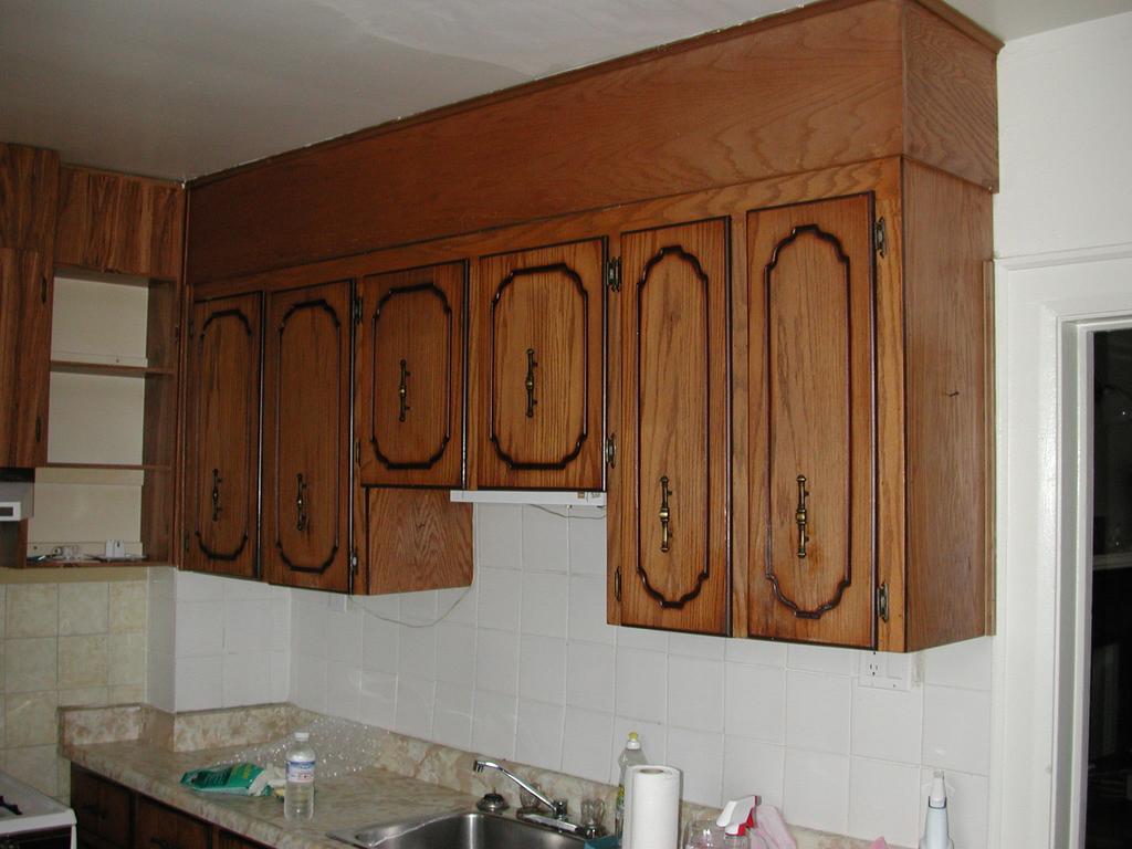 The upper cabinets above the sink. Grungy, but in OK condition.