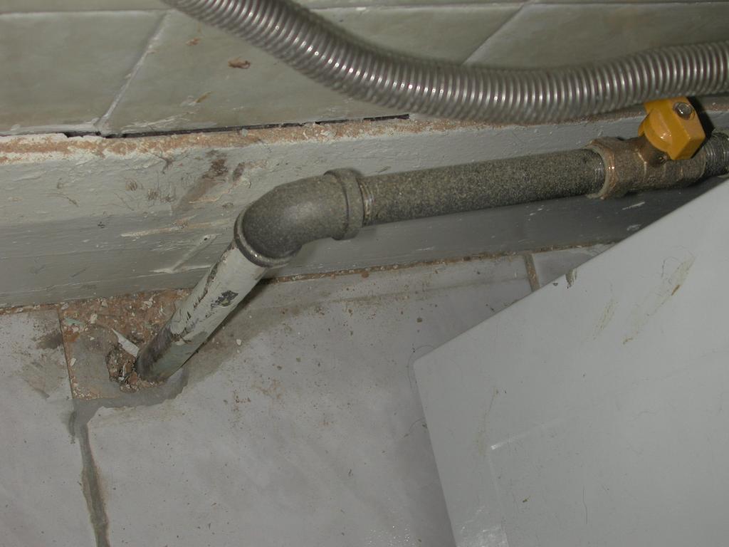 We had to get our gas feed modified so that it the pipe didn't end behind where the base cabinet would be. The old fitting also required a wrench to turn the gas on or off. Now, the pipe goes out from behind the (future location of) the cabinet, and has an easy-to-turn ball valve.