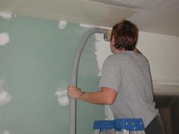 Kat uses the handy sand-and-vacuum machine the contractor left with us.