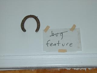 Next to Julie's horseshoe: "bug feature". It ought to