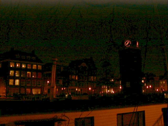 After we left Newmarket Square (after midnight), we left for a party. This is a shot I took on the way, looking across a canal at the buildings on the other side. The clock tower shows the time being about 12:40 am on 1 Jan 1999.