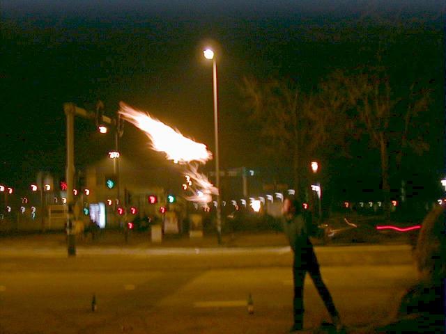 Nils doing fire-spitting.