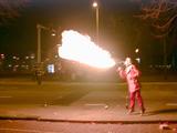 Alex doing fire-spitting in front of the New Year's Eve (well, really New Year's Early Morning) party we went to.