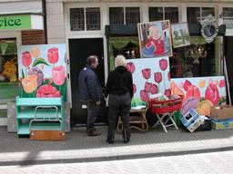 Large paintings of tulips, around the corner from the hotel at which we were staying.