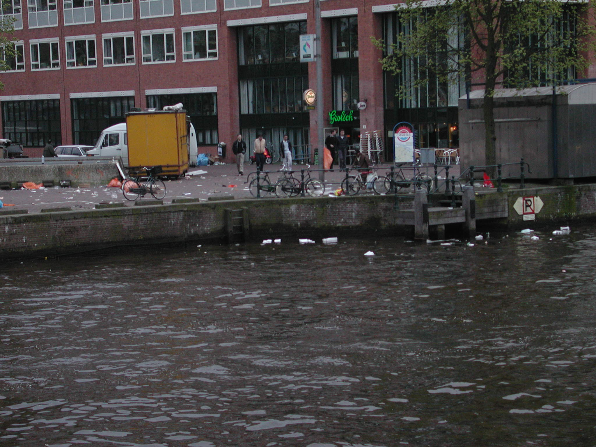 The end of Queensday 2001. Litter is strewn all over the streets (and some in the canals).