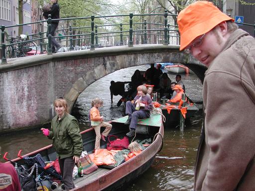 Two boats (going in opposite directions) try to negotiate their way under a bridge.