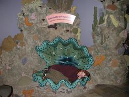 Lenore, asleep in a giant clam shell. [Well, she's just pretending to sleep in this picture.]