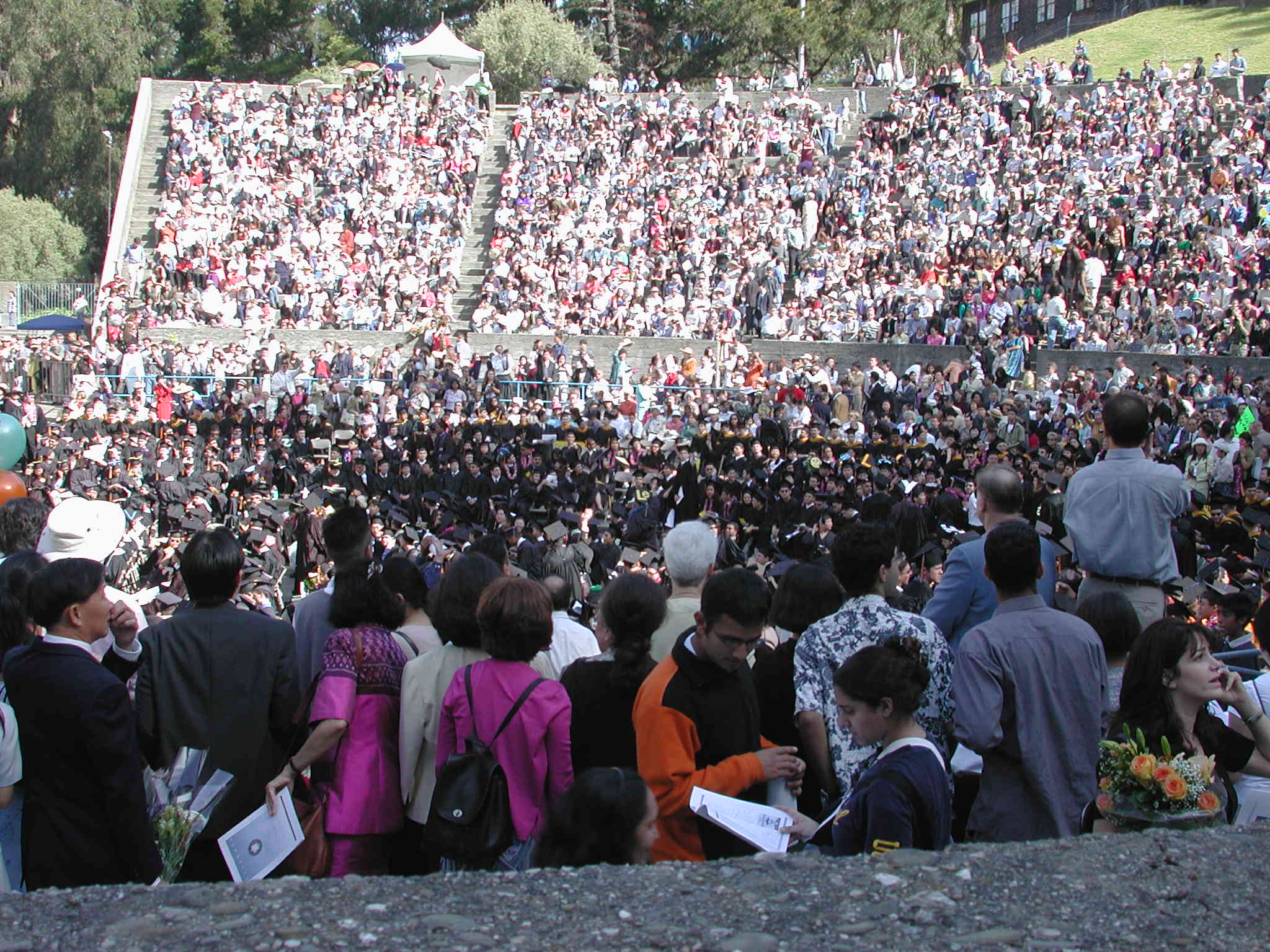 The Greek Theatre is pretty well packed by candidates (mostly in black, at the bottom of the seats), as well as parents and friends (mostly in white, at the top). It was pretty hot out that day. (My face got a little sunburn.)