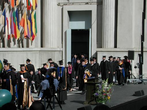 I enter the stage of the Greek Theatre at UC Berkeley, along with the other PhD candidates and the faculty of the College of Engineering. The Masters and Bachelors candidates were seated just in front of the stage.