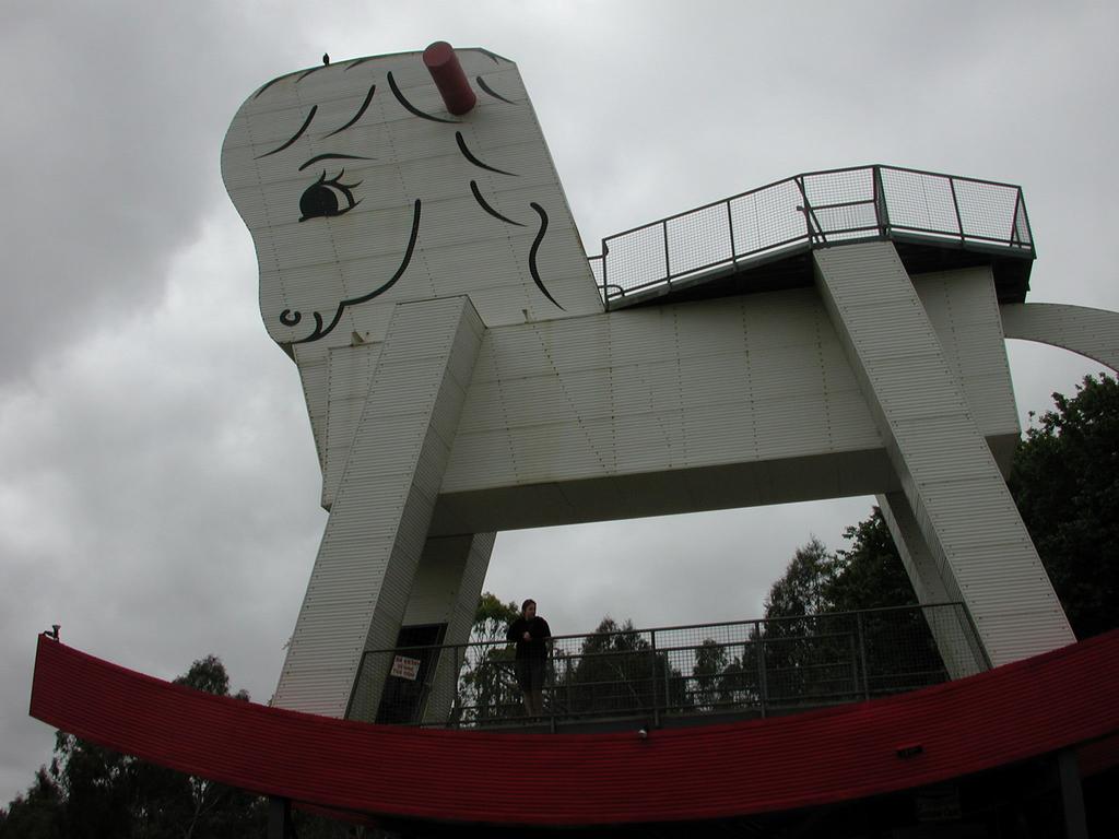 The biggest rocking horse in the world. See Kat on the bottom level there for scale.