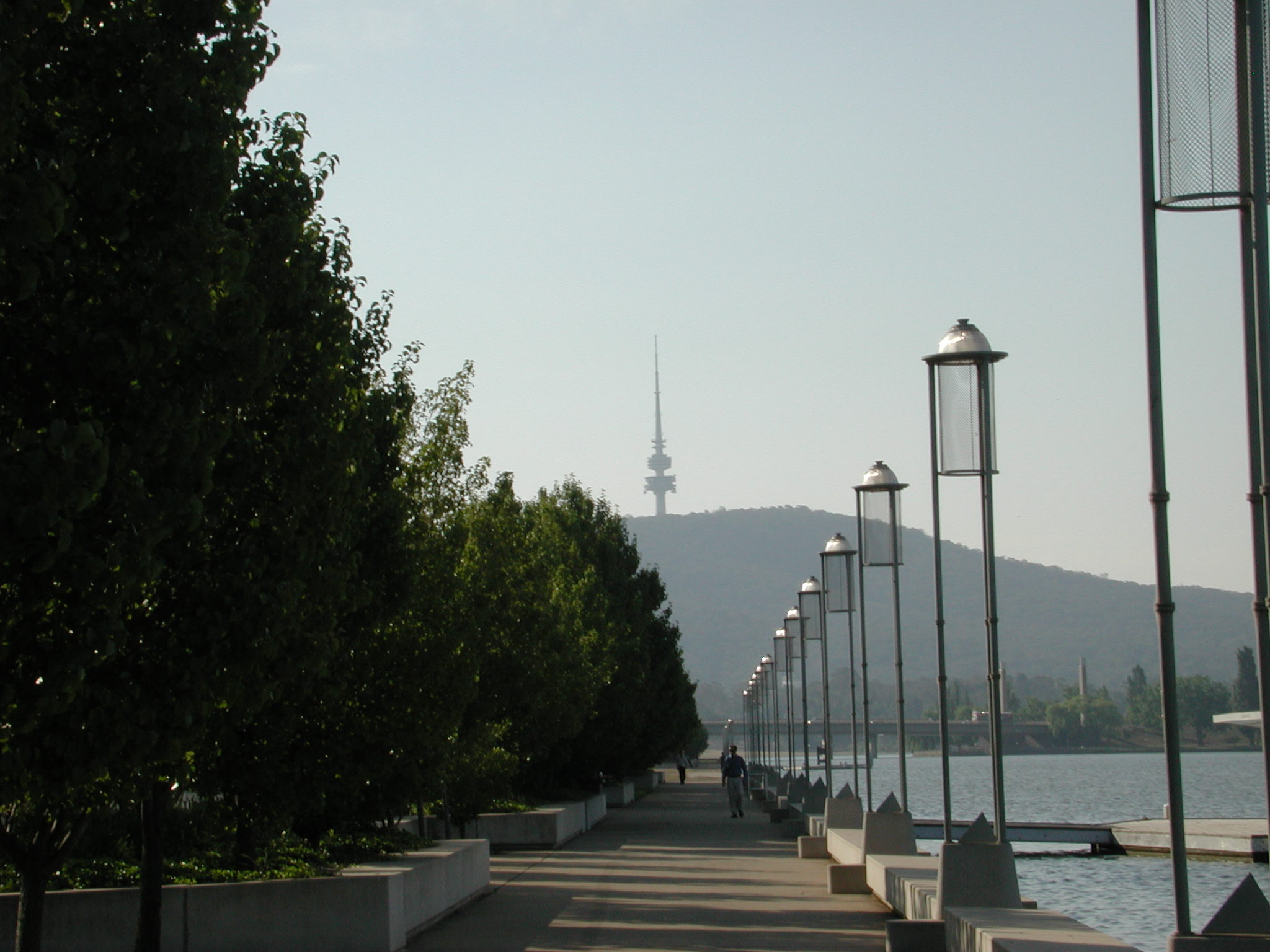 The Telstra Tower, and the walk along Lake Burly-Griffin. The Burly-Griffins were a husband and wife team from Chicago who won the competition to design the city of Canberra.