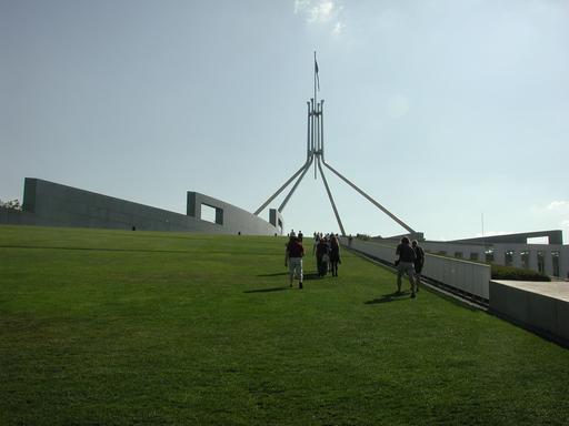There's a large lawn up the sloping sides of the parliament building. You can walk up to the top.
