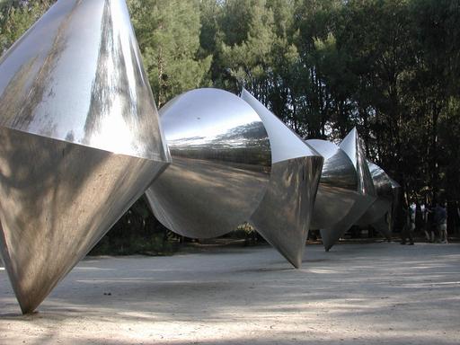 The first of many of these "raytracing" sculptures. We called them that because their simple geometric shapes and mirrored surfaces are exactly the kinds of scenes that are simplest to raytrace on a computer.