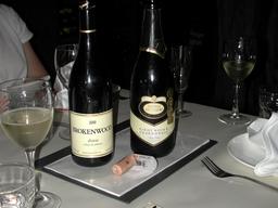 That night, we went out to dinner. Steve chose the wine and Corqy (the artificial cork with the tag attached) tasted some.