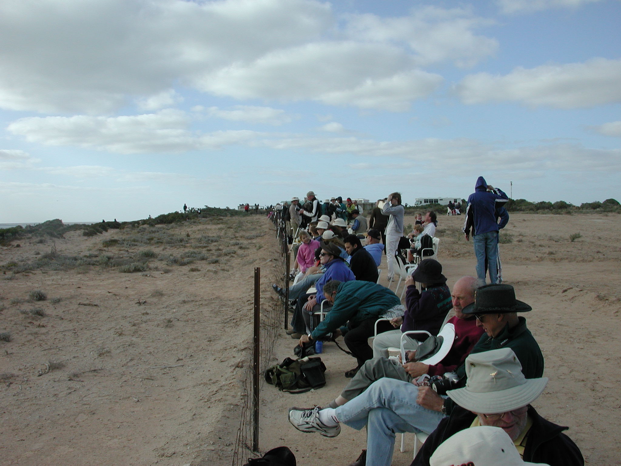 A row of eclipse-watchers get ready for the show.