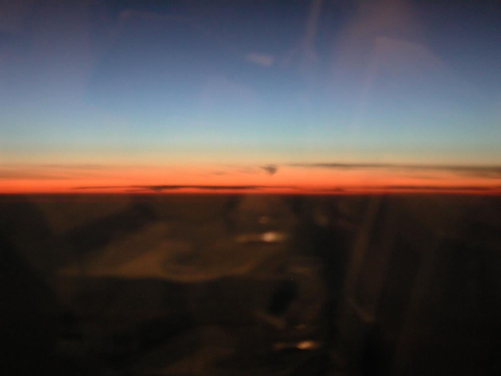 Sunrise, as seen out the window of the plane, shorty before arriving in Sydney.